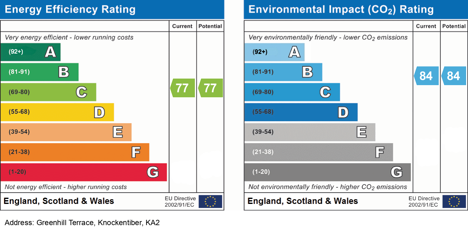 Nestled in the tranquil village of Knockentiber, this property offers a delightful semi-rural lifestyle while remaining within easy reach of essential amenities and transport links. The nearby town of Kilmarnock is just a short drive away and provides an abundance of shops, cafés, restaurants, leisure facilities, and a cinema.