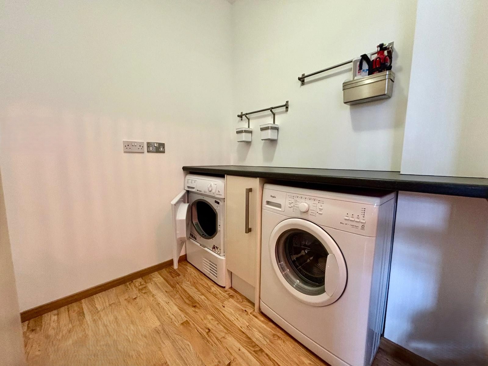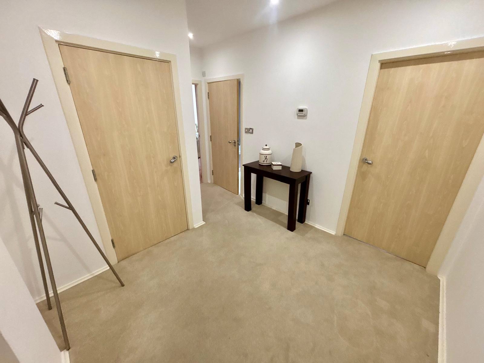 The apartment opens into a spacious entrance hallway, complete with a storage cupboard housing the recently replaced boiler and doors leading to the main accommodation.