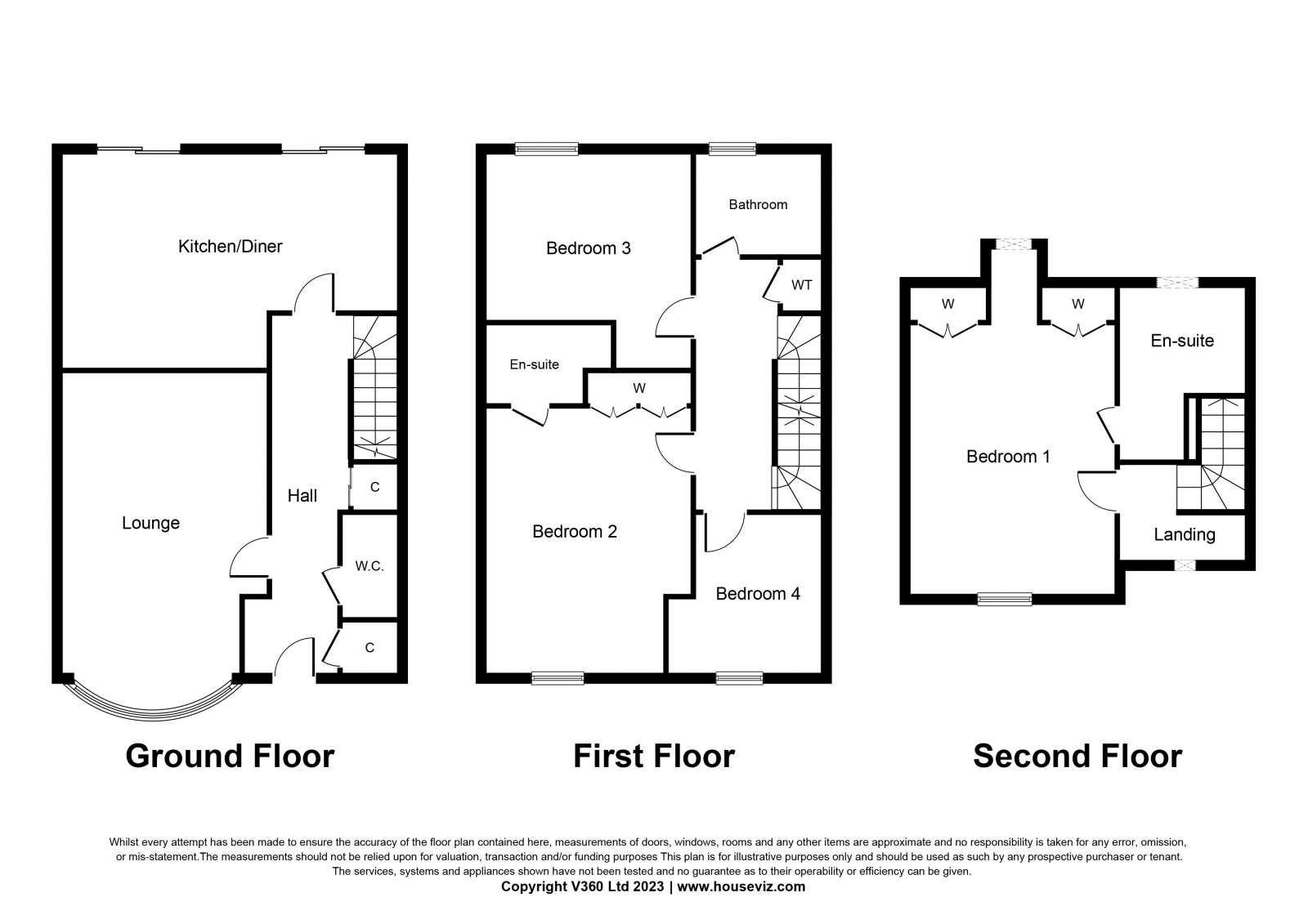 Room sizes (approx. and at widest points)