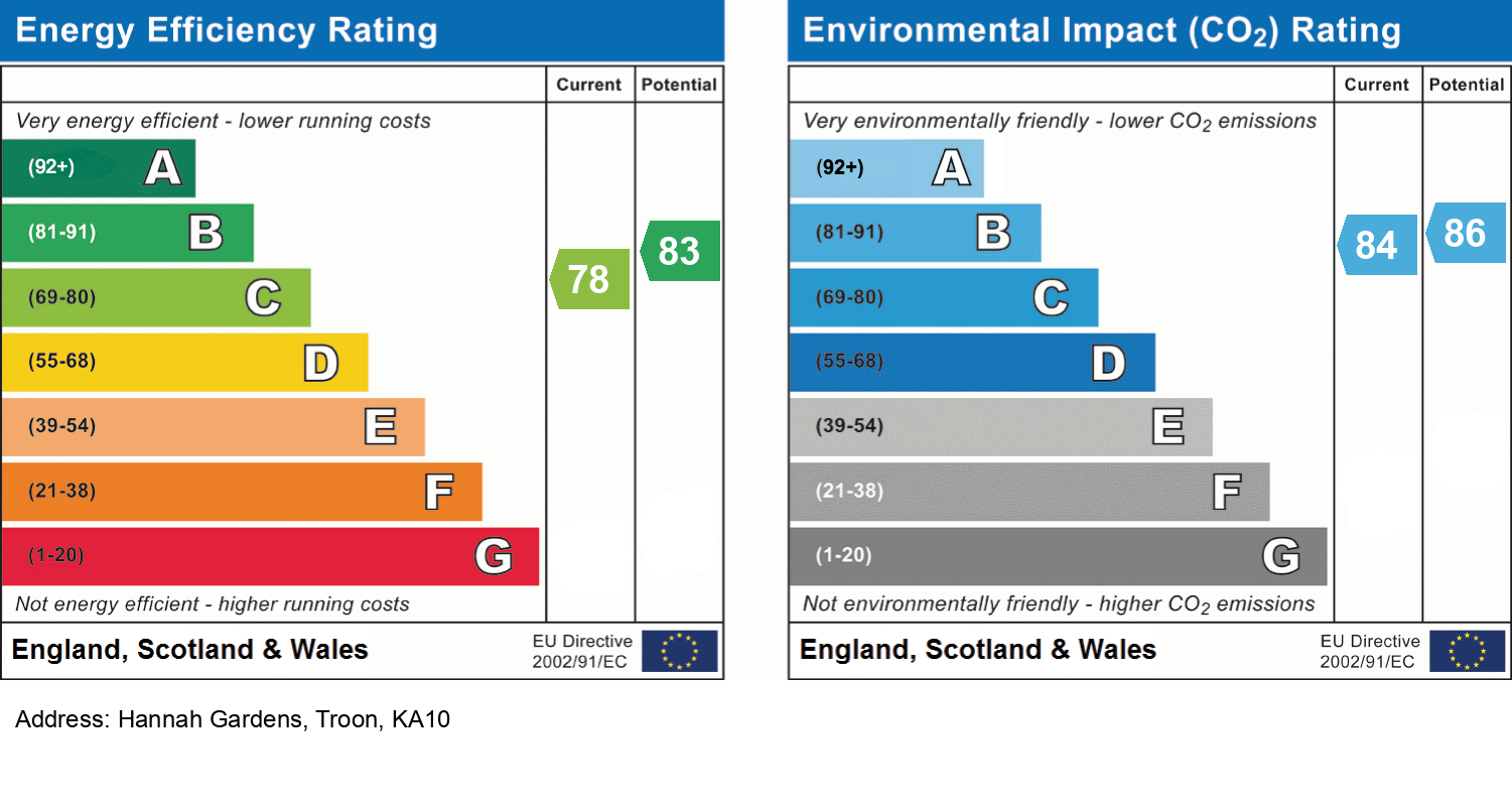 Hannah Gardens is part of therenowned Earl’s Green estate, which is surrounded by open spaces, children’splay areas, and cycle routes that connect the development to Barassie and Troontown centre. Local amenities such as supermarkets, shops, Troon seafront, bars,restaurants, and excellent schooling options (both primary and secondary) areall easily accessible. Transport links are fantastic, with Troon and Barassietrain stations nearby, providing swift access to Glasgow and beyond.