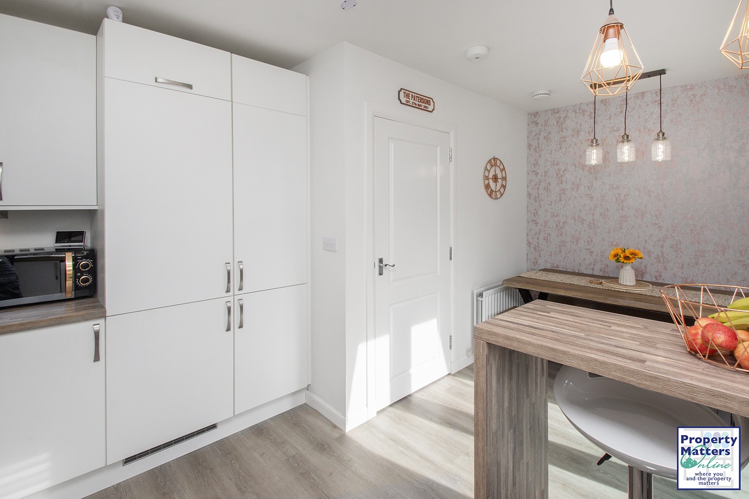 Upon entering, you are greeted bya welcoming entrance hall, which leads to a modern two-piece WC. From here, youstep into the bright and spacious lounge, featuring a stylish media wall and aconvenient storage cupboard tucked under the staircase. The heart of the homeis the impressive 15’ open-plan kitchen and dining area. The contemporarykitchen is fitted with sleek upper and lower wall-mounted cabinets, integratedfridge/freezer, oven, gas hob, and extractor fan. Thoughtfully designedunder-cabinet lighting creates a warm ambiance, and a breakfast bar offersadditional space for casual dining. The dining area comfortably accommodates afamily-sized table, and patio doors open out to the fully enclosed rear garden,allowing for an abundance of natural light.